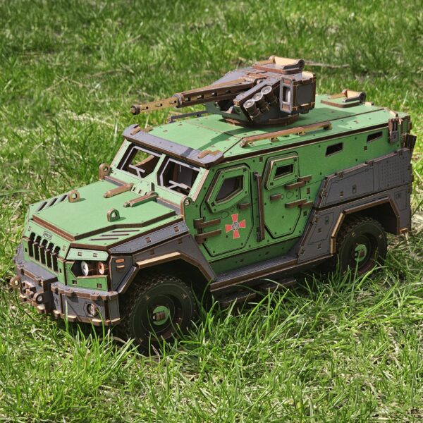 Соберите легенду современной украинской обороны своими руками — лицензионный деревянный 3D конструктор боевой бронированной машины «VARTA 2». Эта модель создана по реальному прототипу бронеавтомобиля, который стал символом мобильности, защиты и мощи на поле боя.