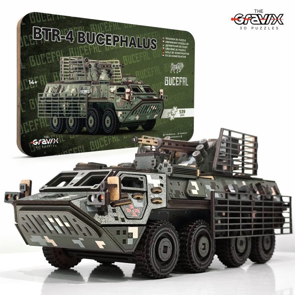 - Погрузитесь в мир инженерии и военной техники с деревянным лицензионным 3D конструктором БТР-4 “Буцефал”. Этот масштабный и детализированный набор состоит из 539 деталей, которые позволят вам создать модель бронетранспортёра размером 35 х 14 х 15 см.