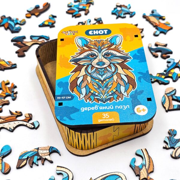 Деревянный Пазл для детей “Енот Фигурный” 35 шт