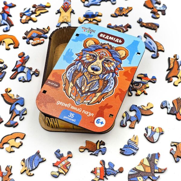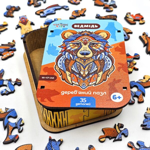 Деревянный Пазл для детей “Медведь Фигурный” 35 шт