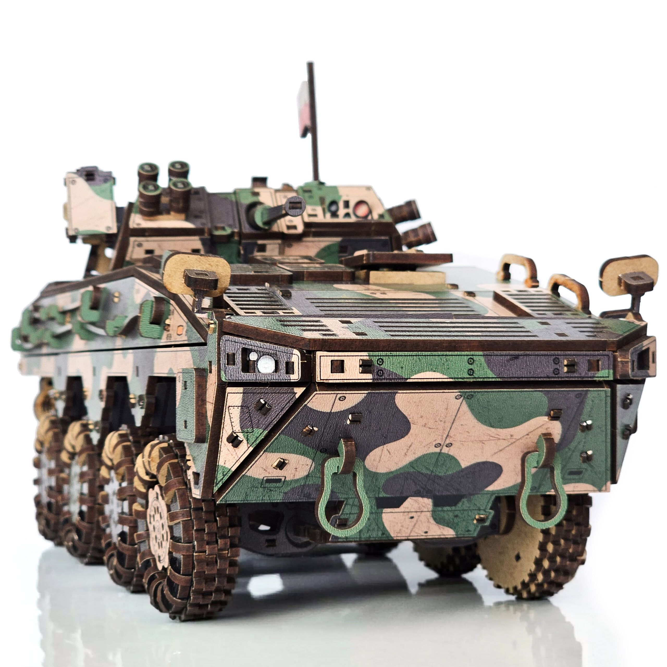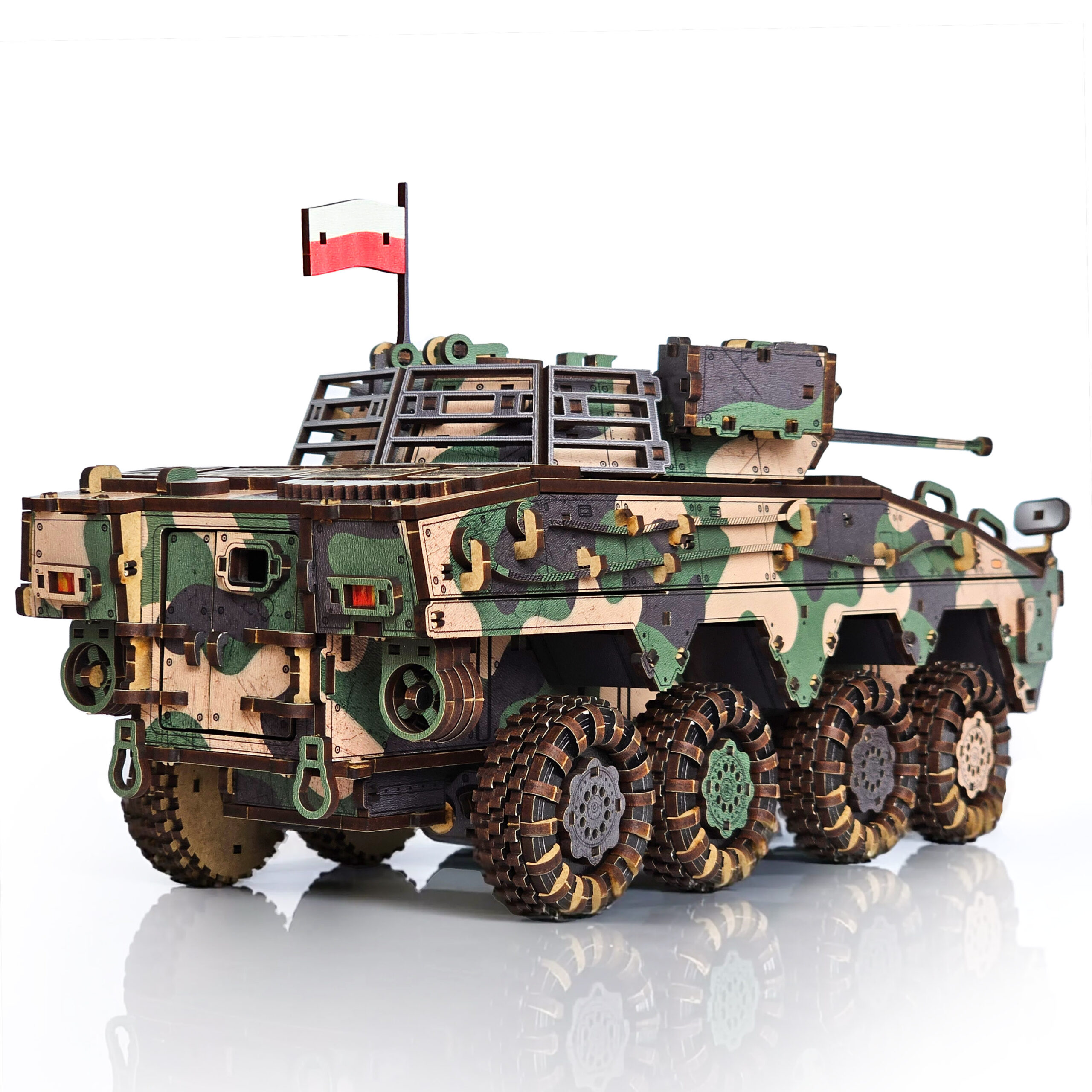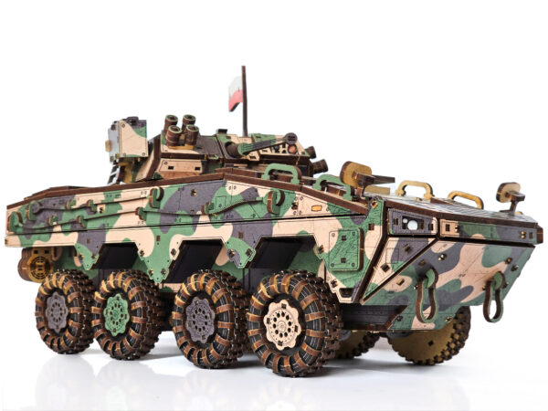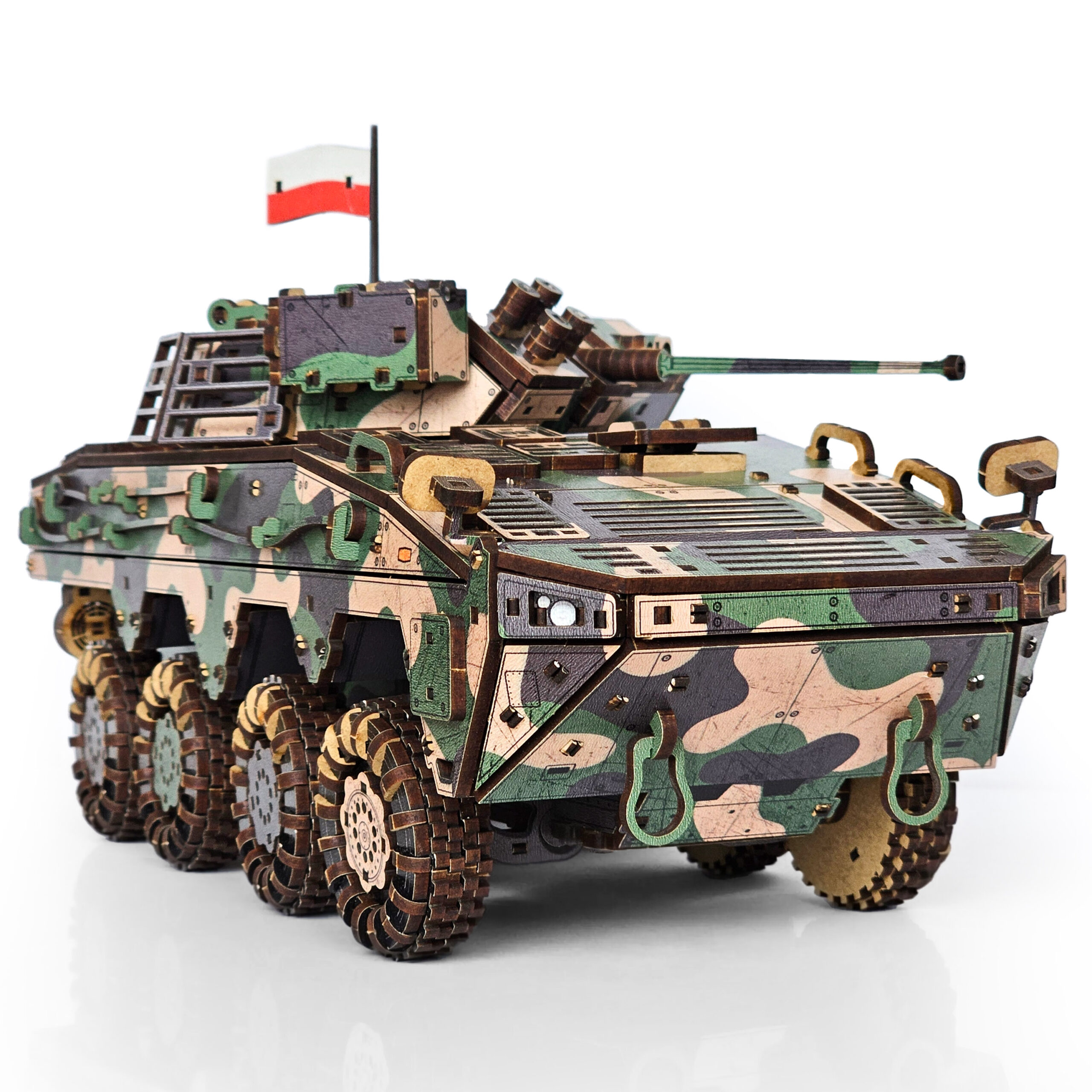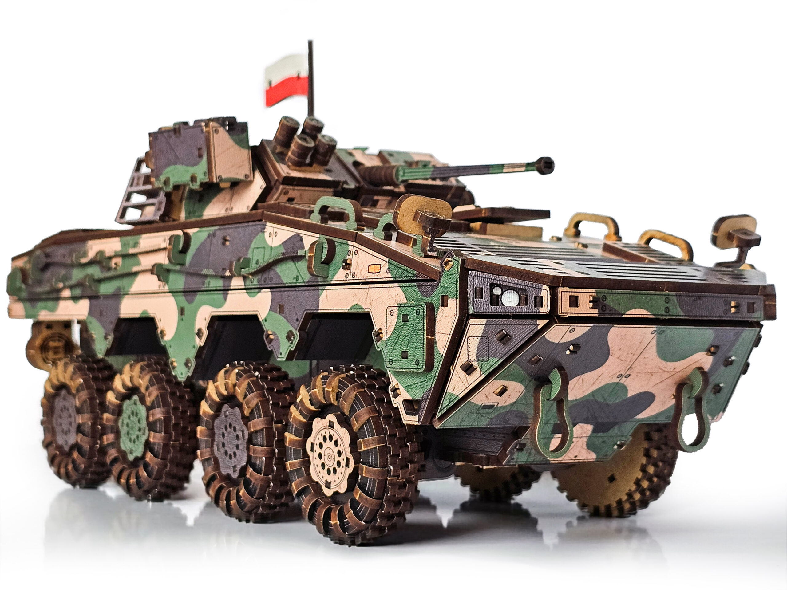 Перед тобою детальний дерев’яний 3D конструктор колісного бронетранспортера KTO Rosomak – машини, яку Польща передала Україні і яка реально працює на полі бою. Збери власний символ польсько-українського братерства та підтримки ЗСУ. 🇵🇱🤝🇺🇦